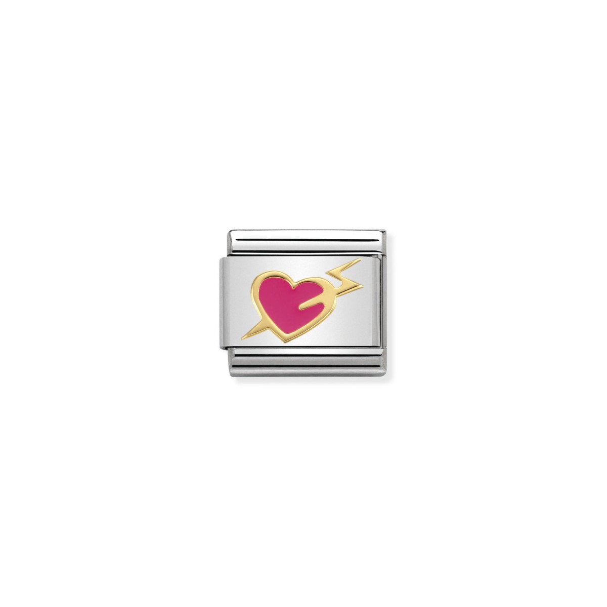 Nomination - Coeur Fuchsia vec éclairs d'or - émail