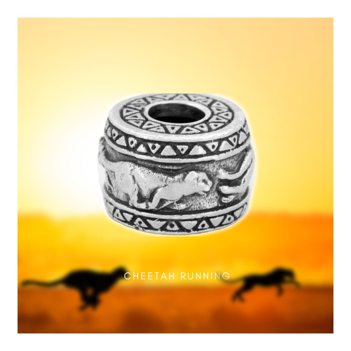Frozen in motion, this silver bead captures the cheetah mid-stride—muscles taut, spirit unleashed. It speaks to momentum, instinct, and moving through life with fierce intention.
